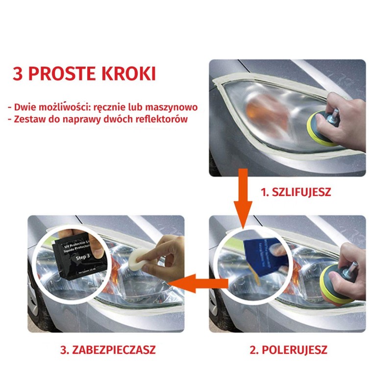 Es un kit proyectado para restablecer la transparencia de los faros, los cuales están amarillos o mate.